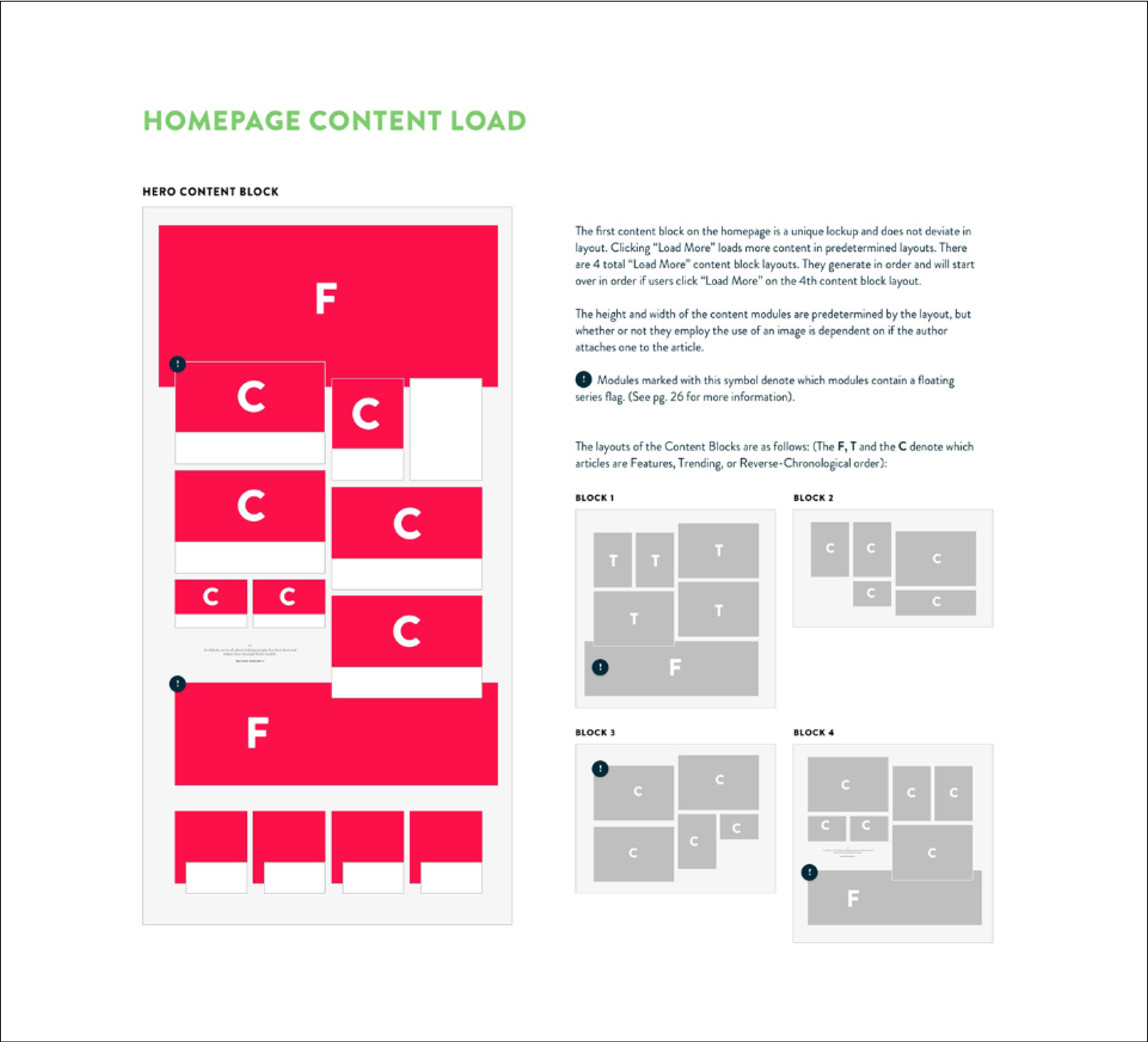 - The design direction called for an approachable yet aspirational aesthetic which features an exciting dynamic grid. The design challenge was to make every component easily authorable from a CMS standpoint meaning a lot of thinking had to be done in regards to how content dynamically loads. Every component throughout the site had to have a defined set of rules not only for usability purposes, but also to guide the web development vendor in its creation.