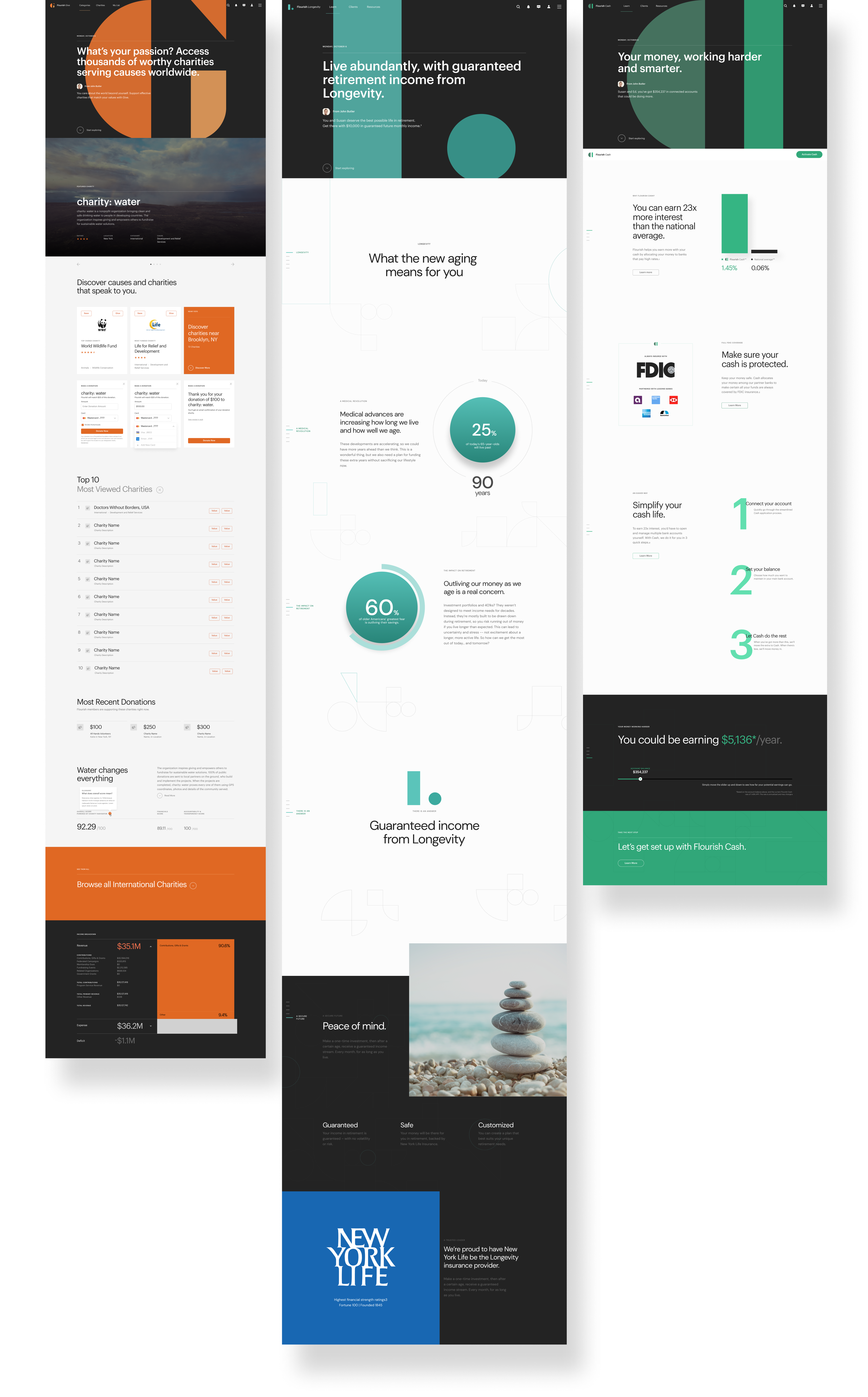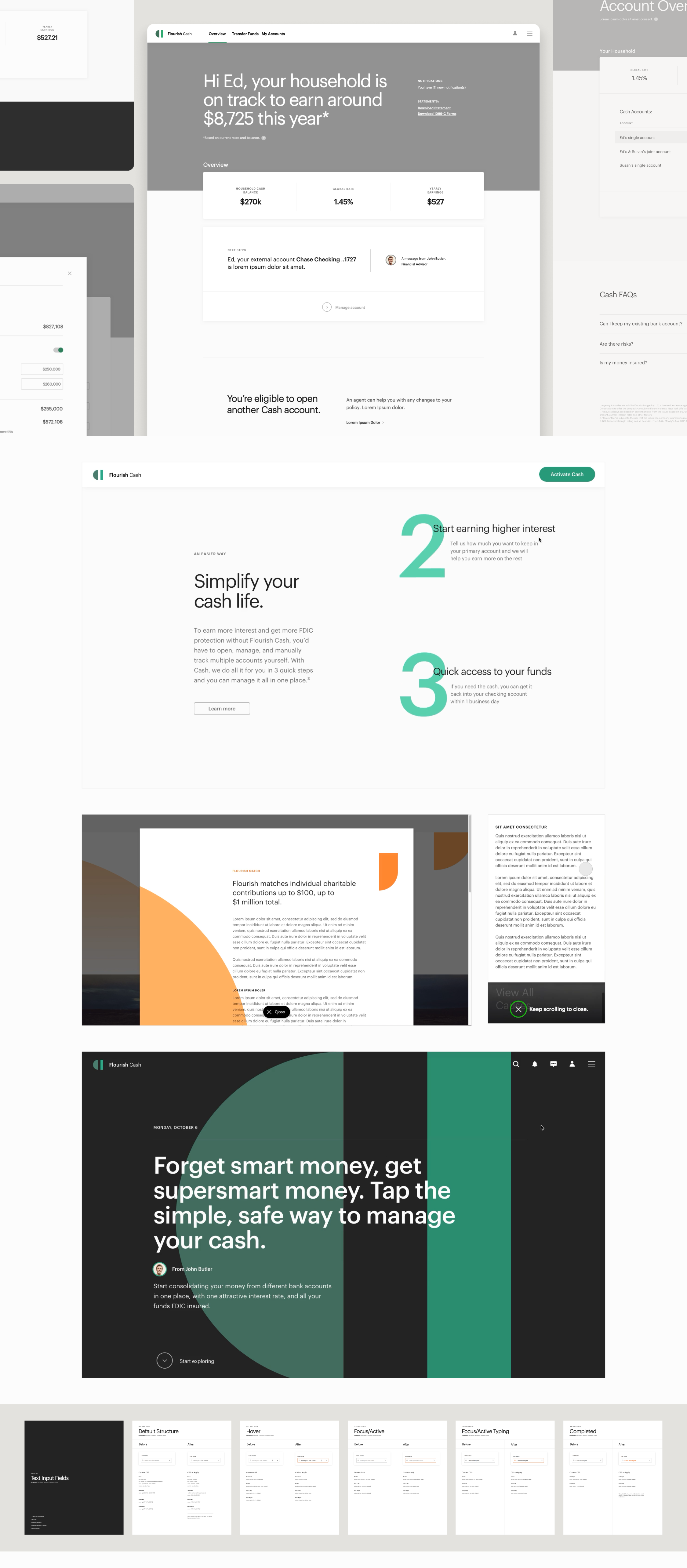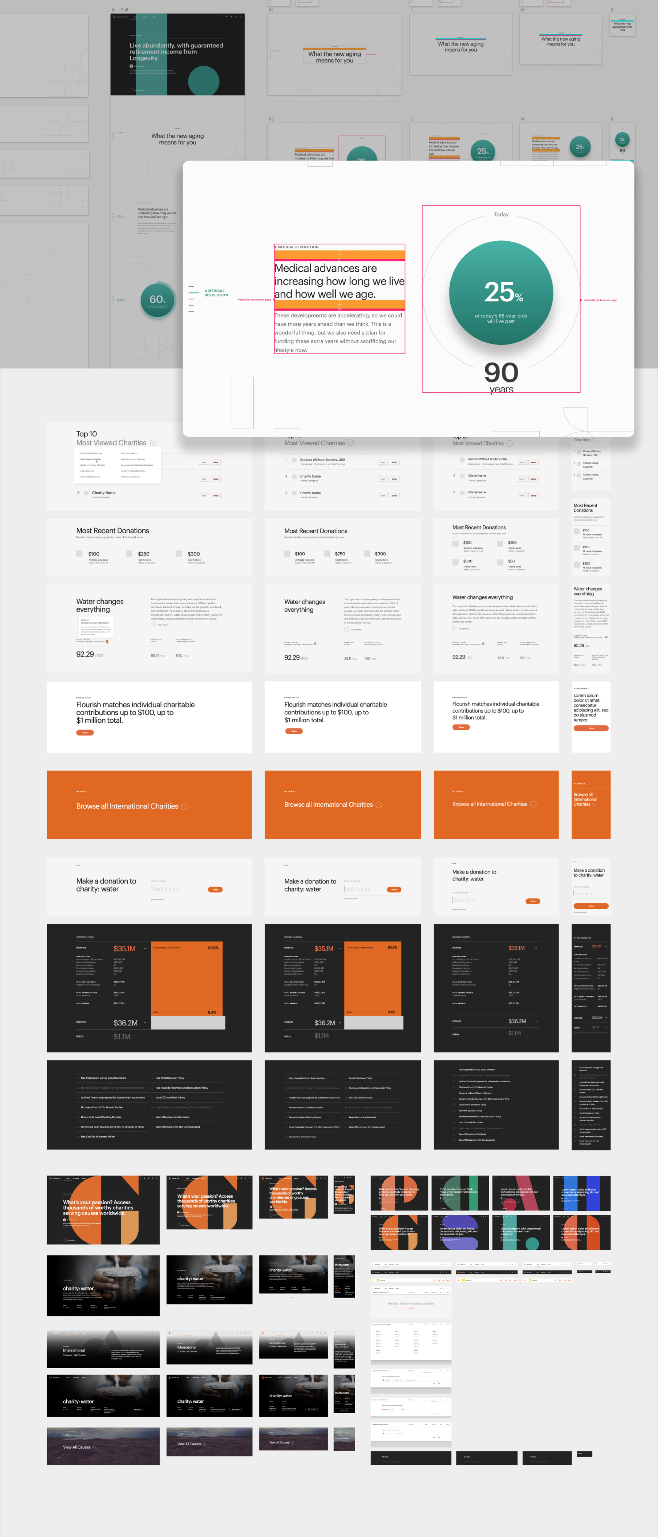 As with such an undertaking of this scale, products had to be developed concurrently with the massive Flourish team acting as its own satellite agency within the client’s own structure. I originally came on to help push designs on the consumer-facing / marketing materials, but would eventually switch to a more global role which encompassed a variety of design aspects in this wide-ranging team effort.